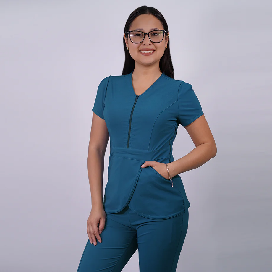 Delantal clínico diseñado específicamente para profesionales de la salud que buscan comodidad y funcionalidad durante largas jornadas de trabajo.